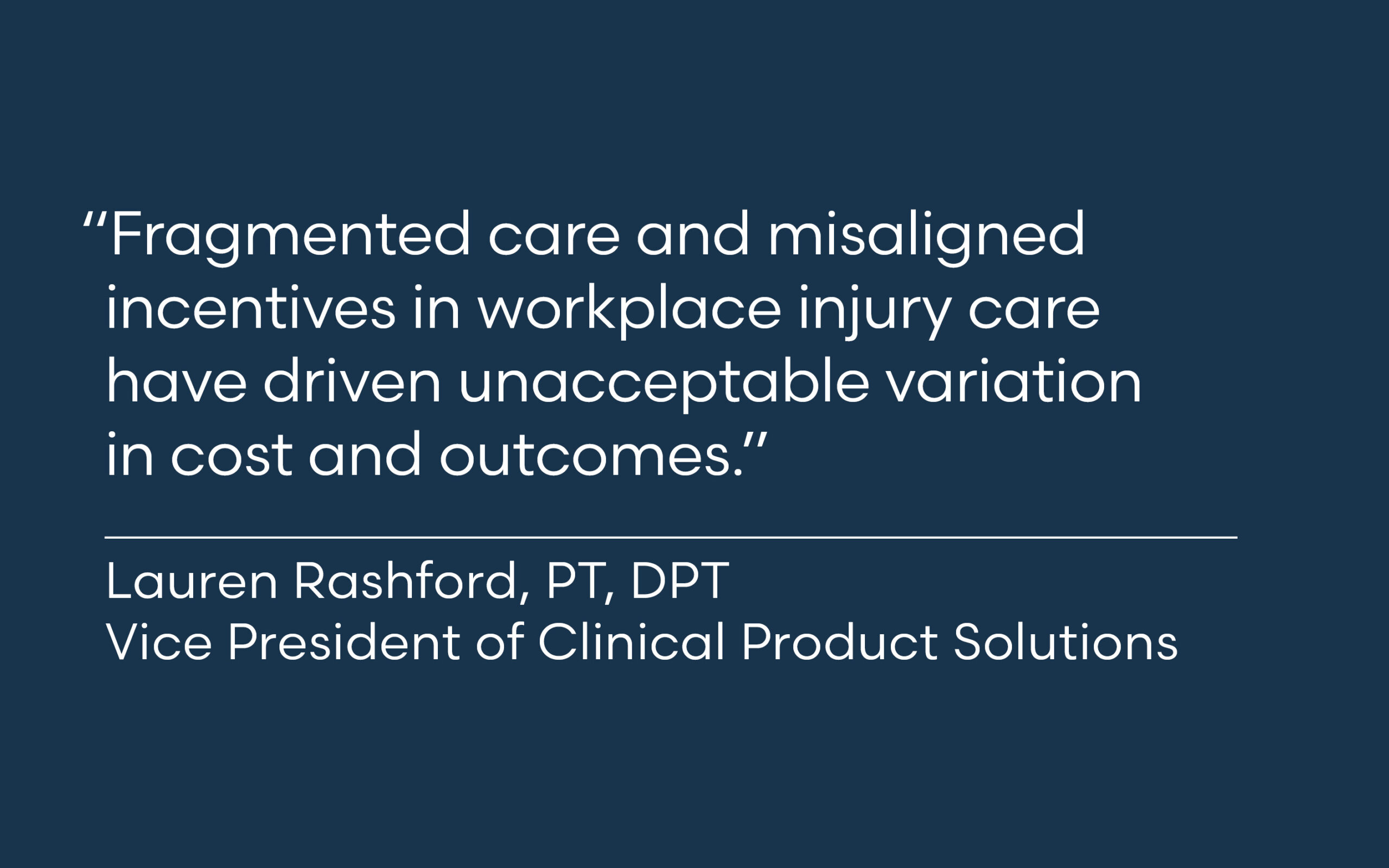 As a result, workplace injury care continues to be a largely fragmented, fee-for-service care delivery system that penalizes payers and patients alike.